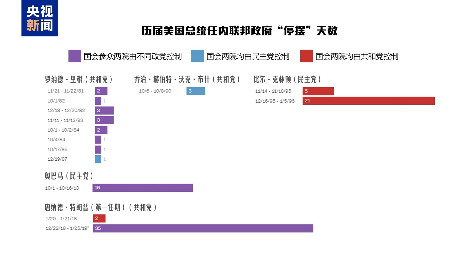 国会参众两院由不同政党控制期间,美政府“停摆”9次;